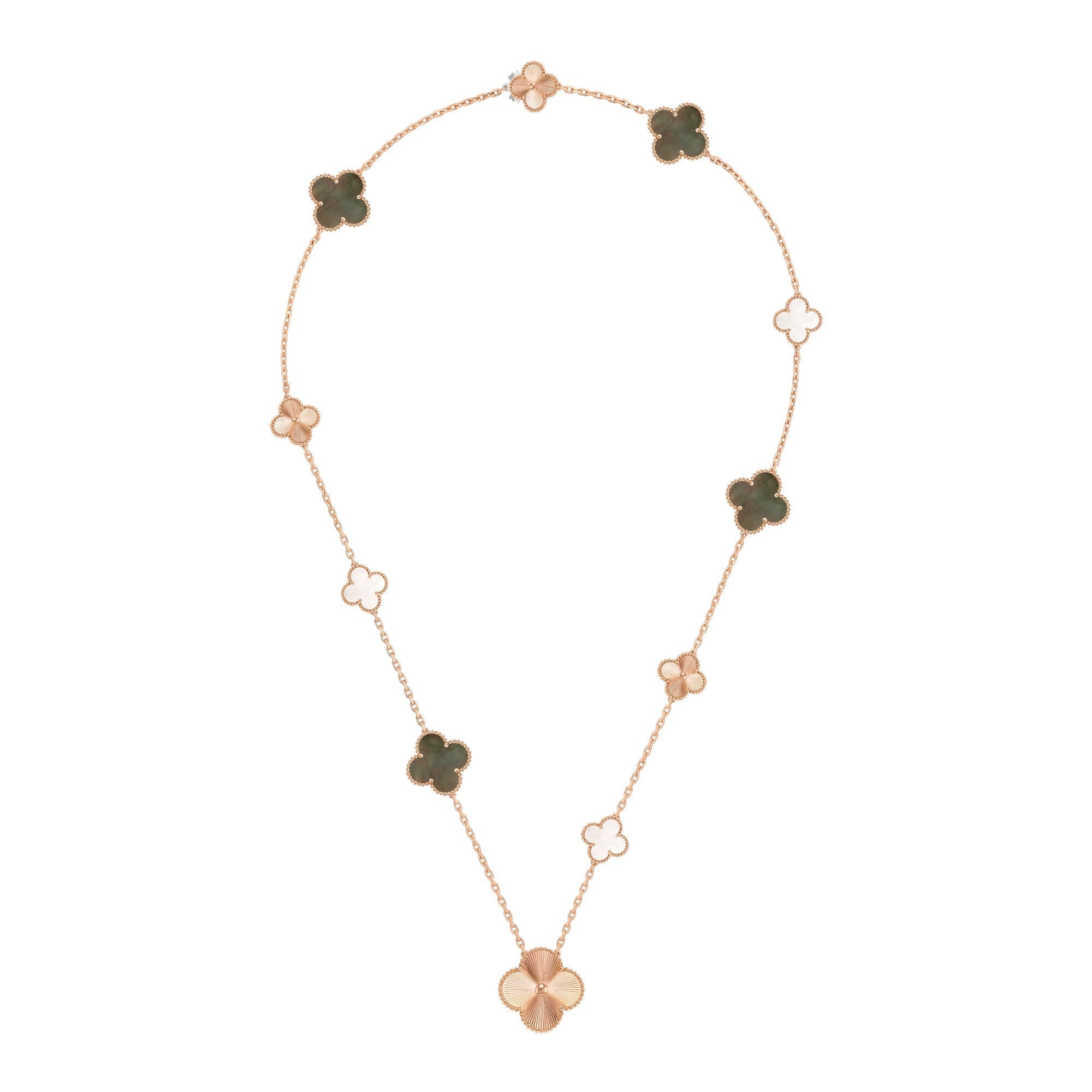 • Can be worn as a_single long necklace_with 11 four-leaf clover charms, measuring_86cm_in length.